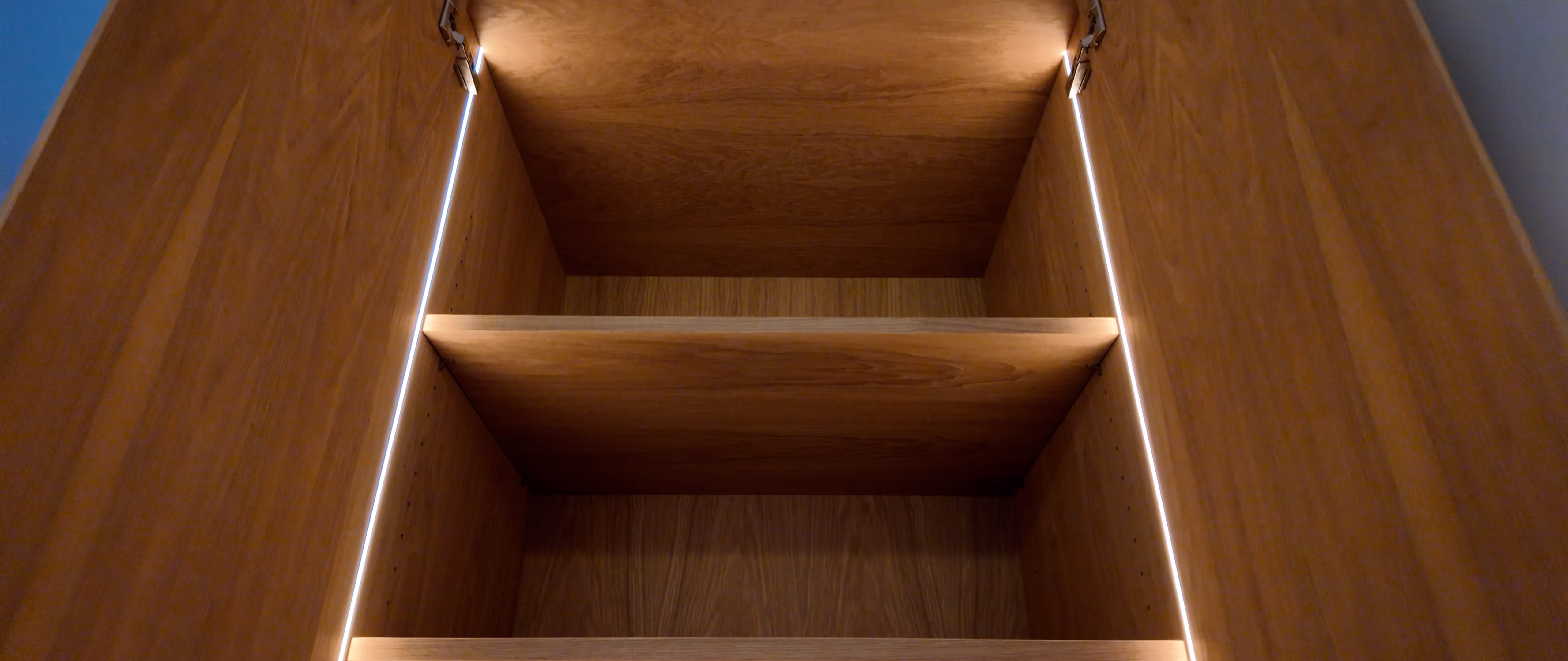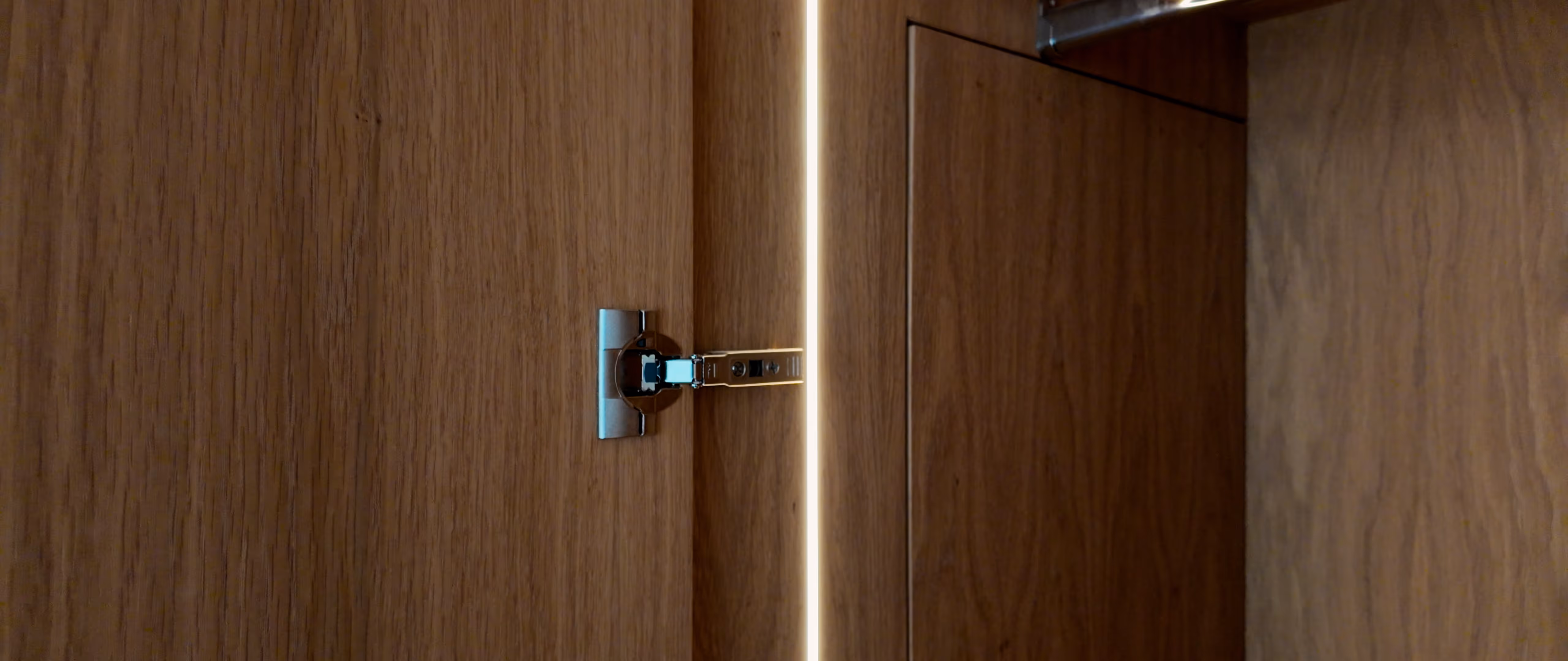 Subtle LED lighting integrated within wardrobes and cabinetry enhances usability while adding a premium finish. Thoughtful detailing, including concealed hinges, precision joinery and tailored internal layouts, reflects the high level of craftsmanship delivered on the project.