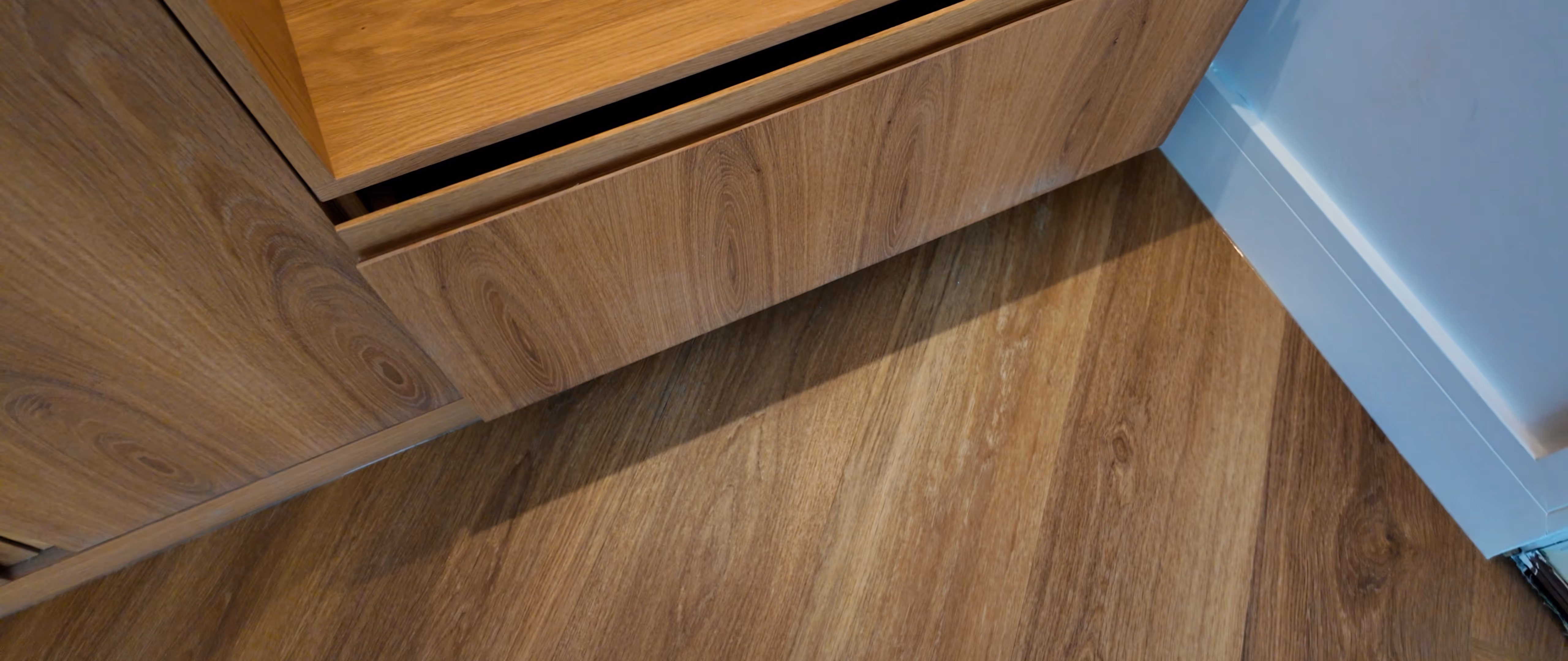 The result is a beautifully crafted interior where bespoke carpentry enhances every room — from statement media walls to tailored storage solutions and a refined, contemporary kitchen.